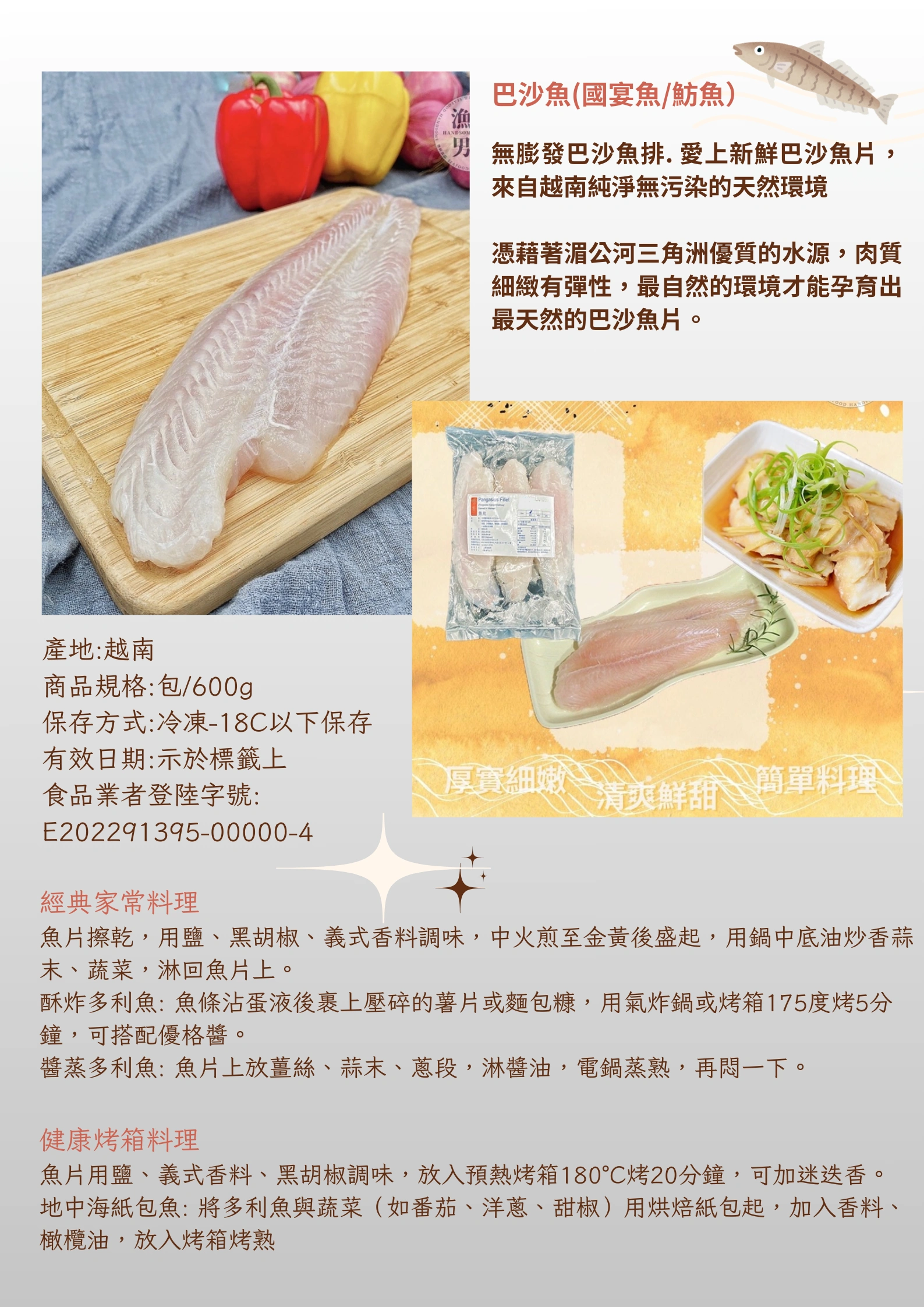 巴沙魚/鯰魚/俗稱多利魚 好處多多,簡單好煮,輕鬆上菜沒問題?? 無骨、無刺、無腥味,裹粉油炸、法式煎魚排亦或是煮魚湯,中式西式全包辦!