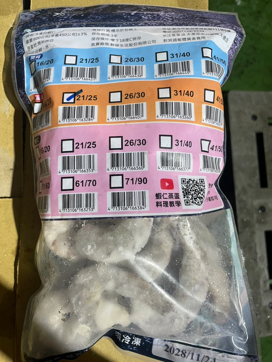 蝦仁-留尾21/25(金)件/12包*0.6K